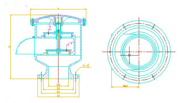 3、 該閥是安裝在固定頂罐上的通風(fēng)裝置,減少油品蒸發(fā)損耗,控制儲(chǔ)罐壓力作用。